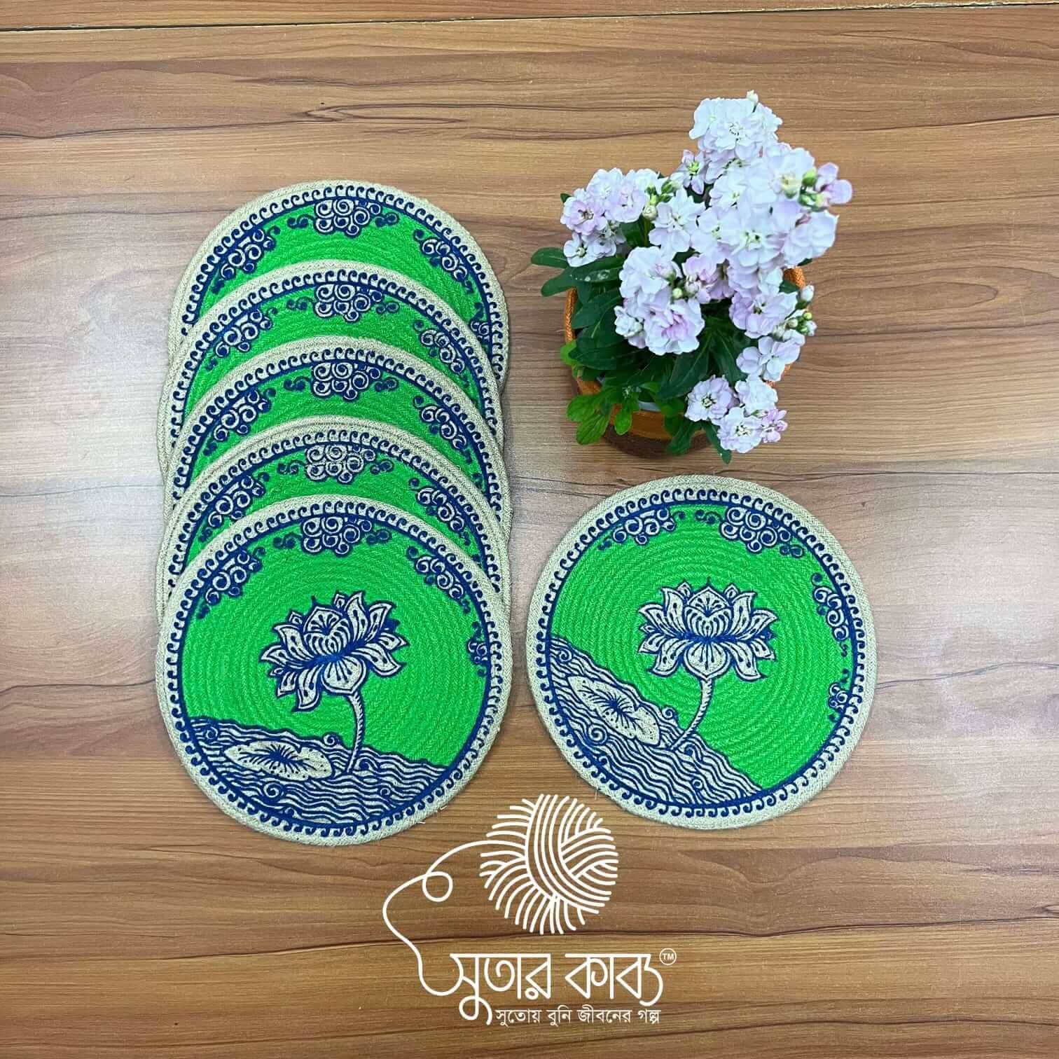 Elevate your dining experience with our Handcrafted Jute Place Mats, where rustic texture meets high-definition artistry. This collection showcases a diverse range of captivating designs, including lush emerald botanical vines, vibrant multi-color mandalas, vintage-inspired sunflowers, and bold lotus motifs.