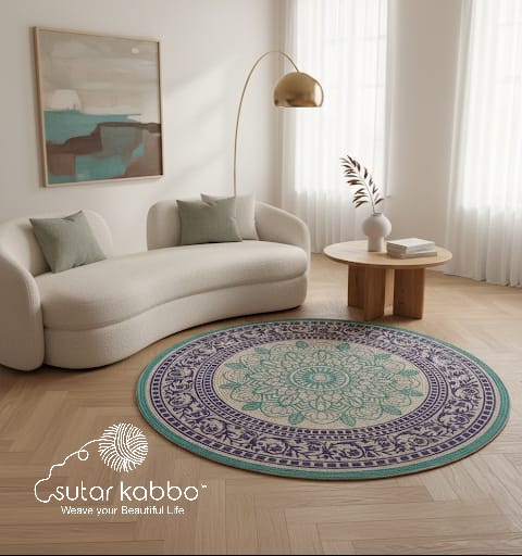 Bohemian Mandala Round Jute Rug – Handcrafted Natural Fiber Area RugBohemian Mandala Round Jute Rug – Handcrafted Natural Fiber Area Rug