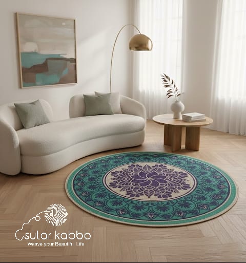 • Versatile Round Profile: The circular shape is perfect for placement under round coffee tables or in open-concept living spaces.